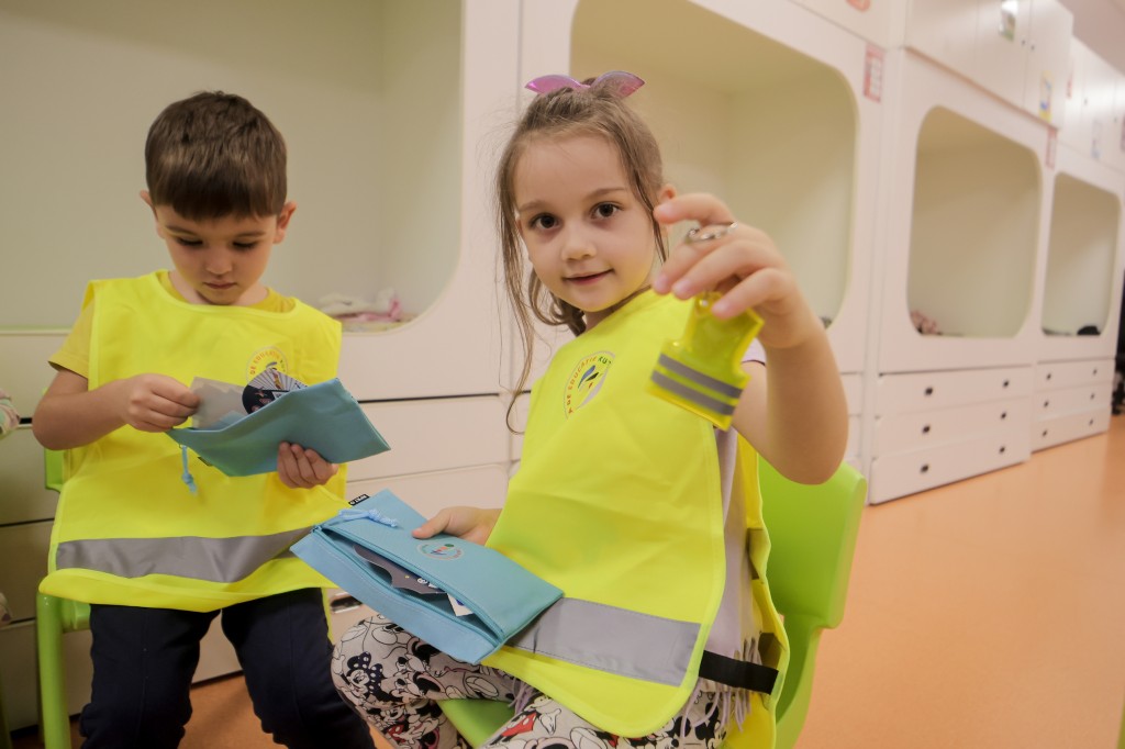 În grădinițe, copiii au făcut primii pași spre înțelegerea regulilor simple de deplasare: semafor, traversare, centură de siguranță. Informația a fost livrată prin jocuri, povești și materiale vizuale ușor de înțeles.